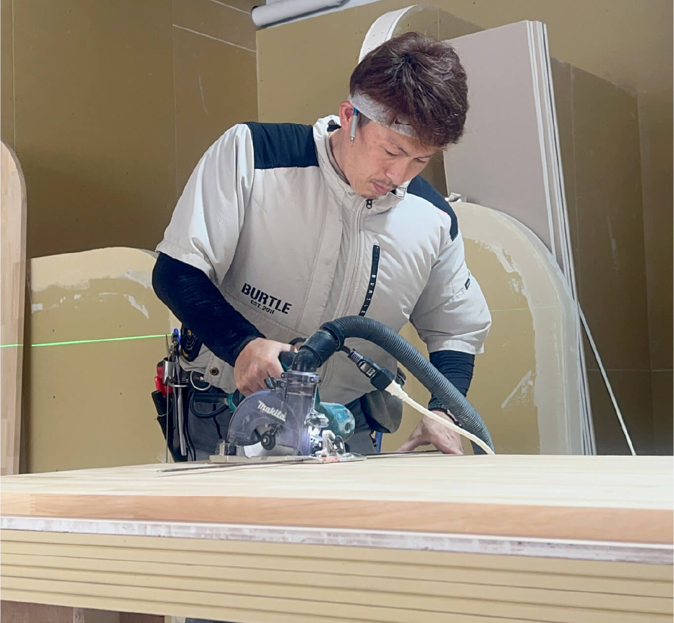 責任感が付いたかな。ただ言われたことをやるんじゃなくて、自分で責任を持って現場を仕上げていこうっていう意識が昔よりも強くなりましたね。作業中も自分で考えたり、それまでの経験をもとに応用したりできるようになりました。いつも同じものを作ってる訳じゃないので、一つ現場が完成するごとに達成感がありますよ!